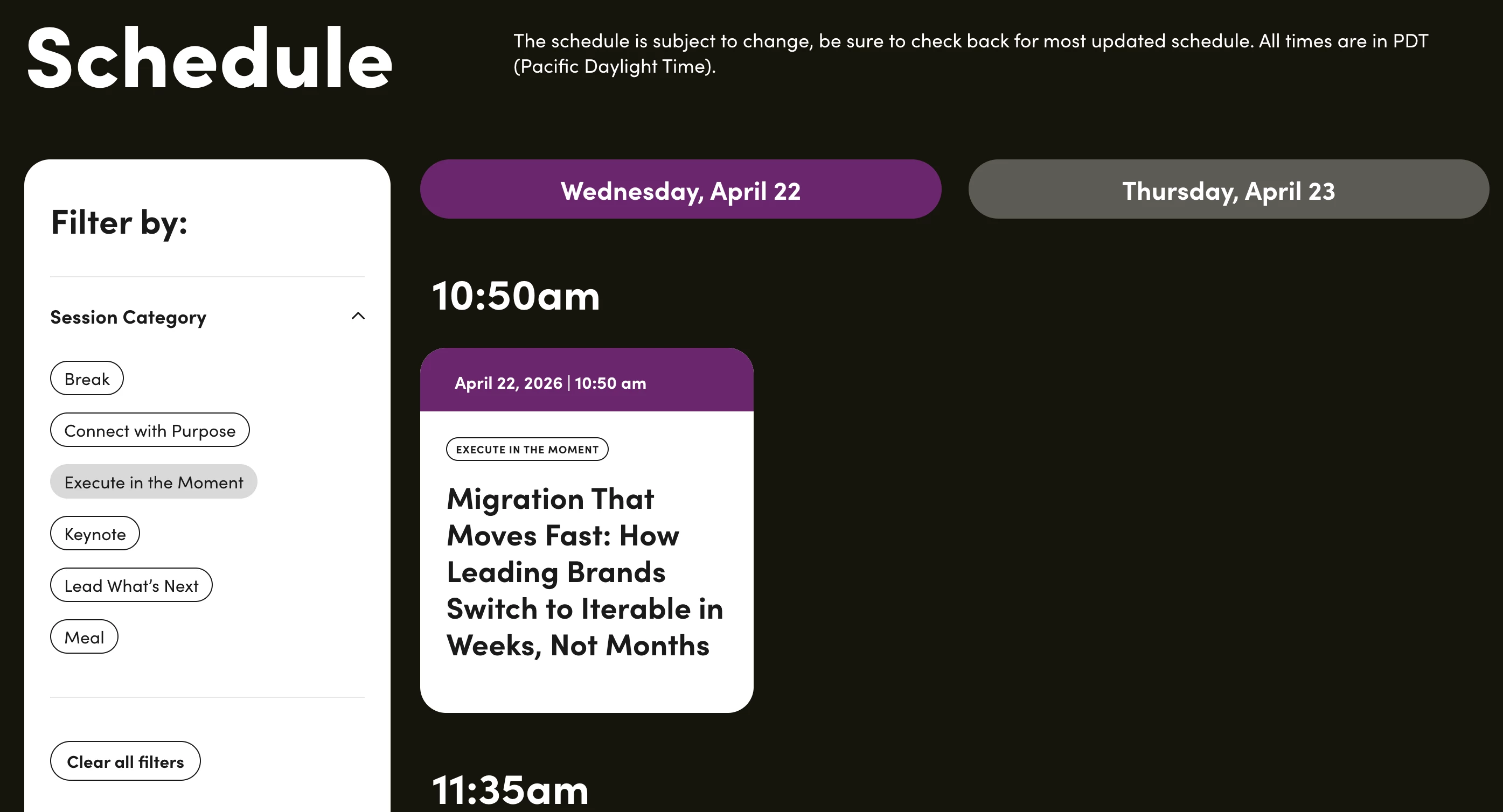 The agenda is organized across three tracks (Lead What’s Next, Execute in the Moment, and Connect with Purpose) — but think of them as lenses, not lanes. The strongest schedules will mix all three.