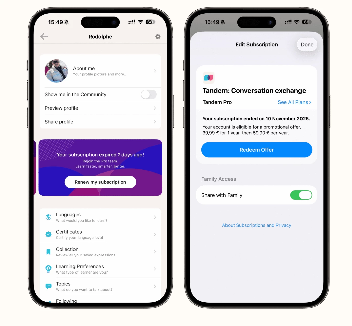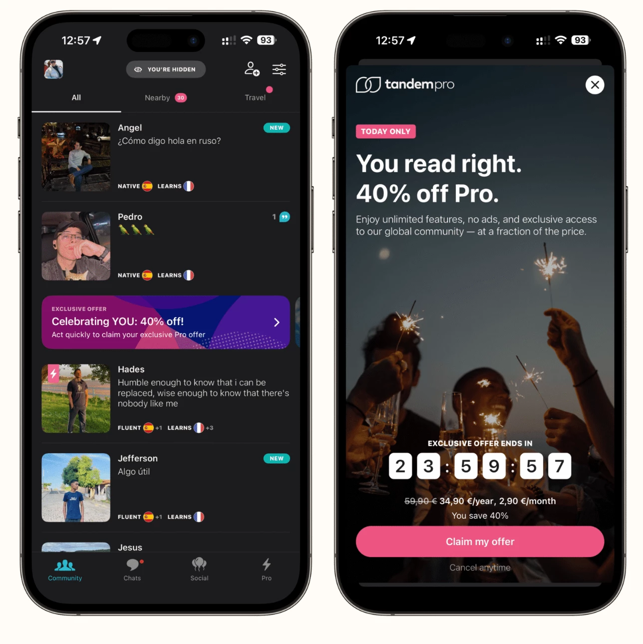 Tandem, a global language exchange platform, took a different approach to driving upgrades by embedding messaging directly into the product experience instead of relying on traditional lifecycle channels.